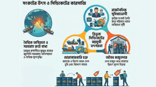 গত ফেব্রুয়ারির শেষ দিকে ইসরায়েল ও যুক্তরাষ্ট্র আকস্মিক ইরানে হামলা চালানোর পর মধ্যপ্রাচ্যে সৃষ্ট যুদ্ধ পরিস্থিতিতে বৈশ্বিক জ্বালানিখাতে অস্থিরতা দেখা দিয়েছে। জ্বালানি সরবরাহের অন্যতম গুরুত্বপূর্ণ রুট হরমুজ প্রণালী যুদ্ধের কেন্দ্রে পরিণত হওয়ায় এই অস্থিরতা ক্রমশ প্রকট হচ্ছে। ইউরোপ-আমেরিকার পাশাপাশি এর প্রভাব পড়ছে বাংলাদেশেও। আর এই পরিস্থিতিতেই জ্বালানি তেল নিয়ে সক্রিয়