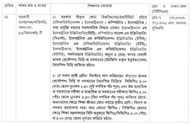 আবেদন ফি: টেলিটক সিমের মাধ্যমে পরীক্ষার ফি বাবদ ২৩০ টাকা পাঠাতে হবে।