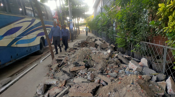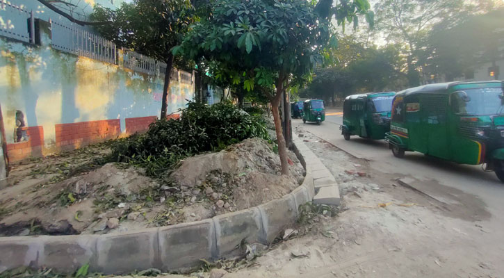 বছর খানেক আগেও সিমেন্টের টাইলসে দৃষ্টিনন্দন ফুটপাত আর সবুজে ঘেরা এই সড়ক এখন ঢাকা উত্তর সিটি কর্পোরেশনের (ডিএনসিসি) চলমান উন্নয়নকাজের জেরে পরিণত হয়েছে সীমাহীন দুর্ভোগের এক প্রান্তরে। বৃষ্টির পানি নিষ্কাশনের জন্য ড্রেন নির্মাণ ও নতুন ফুটপাত তৈরির কাজ চললেও ঠিকাদার প্রতিষ্ঠানের অপরিকল্পিত কাজ ও অব্যবস্থাপনায় ধুলা-বালি আর ভাঙা ইটের স্তূপ; পথচারী ও যাত্রীদের জীবন দুর্বিষহ করে তুলেছে।