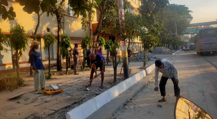 সরেজমিনে দেখা গেছে, পুরো এলাকা ধুলোয় ধূসর। সড়কের উভয় পাশেই চলছে কাজ। এক পাশের রাস্তা পিচ ঢালাই হলেও ফুটপাতের কাজ বাকি। আরেক পাশে রাস্তা ও ফুটপাত দুটোই ভাঙাচোরা অবস্থায় পড়ে আছে। আর এই অব্যবস্থাপনার সবচেয়ে বড় শিকার হচ্ছেন পথচারীরা।