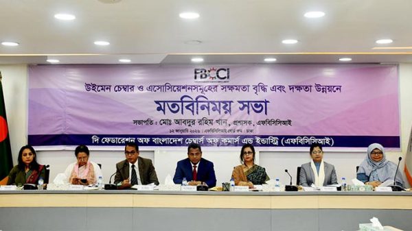 সোমবার (১২ জানুয়ারি) উইমেন চেম্বার ও অ্যাসোসিয়েশনগুলোর সক্ষমতা বৃদ্ধি ও দক্ষতা উন্নয়নে আয়োজিত মতবিনিময় সভায় অংশ নিয়ে এ আহ্বান জানান নারী উদ্যোক্তারা। মতবিনিময় সভাটির আয়োজন করে দি ফেডারেশন অব বাংলাদেশ চেম্বার্স অব কমার্স অ্যান্ড ইন্ডাস্ট্রি (এফবিসিসিআই)।