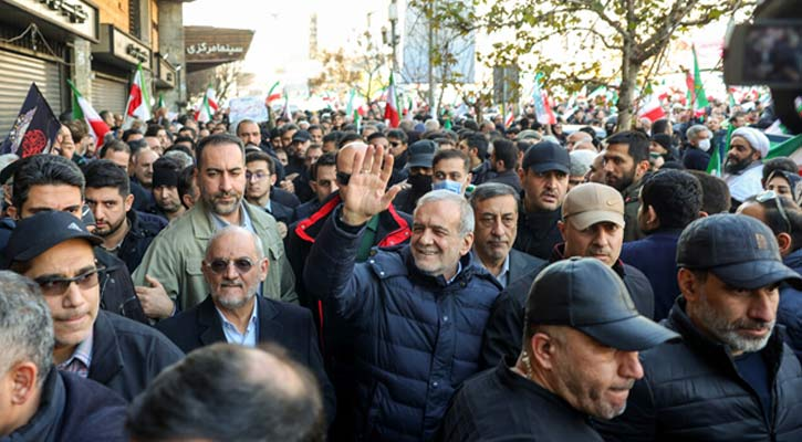 তেহরানের বিক্ষোভ সমাবেশে অংশ নেন প্রেসিডেন্ট মাসুদ পেজেশকিয়ান