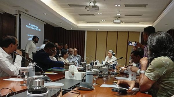প্রাক-বাজেট আলোচনা অনুষ্ঠানে দেশের প্রিন্ট, অনলাইন ও ইলেকট্রনিক মিডিয়ার সম্পাদকসহ জ্যেষ্ঠ সাংবাদিকরা আসন্ন বাজেটে কি ধরনের রাজস্ব নীতি ও পরিকল্পনা গ্রহণ করা দরকার সে বিষয়ে মতামত দেন।
