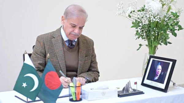 বিএনপি চেয়ারপারসন ও সাবেক প্রধানমন্ত্রী বেগম খালেদা জিয়াকে শ্রদ্ধাকে জানাতে ইসলামাবাদে বাংলাদেশ হাইকমিশনে খোলা শোক বইয়ে সই করেছেন পাকিস্তানের প্রধানমন্ত্রী শেহবাজ শরীফ। সোমবার (৫ জানুয়ারি) পাকিস্তানের প্রধানমন্ত্রীর দপ্তর এ তথ্য জানিয়েছে। এদিন ইসলামাবাদে অবস্থিত বাংলাদেশ হাইকমিশন পরিদর্শন করেন পাকিস্তানের প্রধানমন্ত্রী শেহবাজ শরীফ। এ সময় হাইকমিশনে সাবেক প্রধানমন্ত্রী খালেদা জিয়ার জন্য